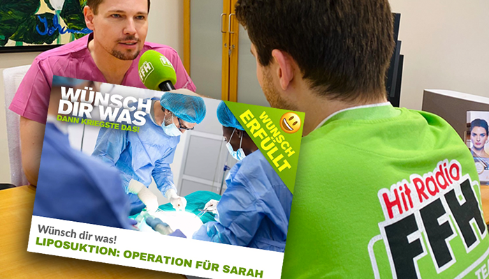 FFH-Hörerin Sarah hat sich beim Gewinnspiel „WÜNSCH DIR WAS, DANN KRIEGSTE DAS!“ von Hitradio FFH eine Liposuktion (Fettabsaugung) gewünscht, um endlich ihr Lipödem in den Griff zu bekommen.